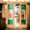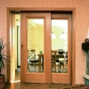 Posouvání dveří funguje tak, že se křídlo pohybuje těsně podél stěny. Tento systém lze s úspěchem použít při rekonstrukcích (nevyžaduje speciální stavební úpravy) nebo tam, kde je záměrem využít estetiku dveří i při otevřeném stavu - výrazný prvek interiéru (např. dveře s vitrážemi).