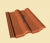 Podpěra z nerezové oceli zakotvená přímo v tašce umožňuje již při pokládce krytiny instalaci podpor pro vodiče hromosvodové soustavy.