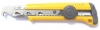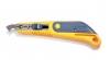 Protiskluzná rukojeť, ocelová vodící lišta, aretace čepele šroubem, háková ulamovací čepel.
