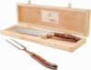 Tato krájecí sada je unikátním darem. Nůž je dokonalý pro krájení drůbeže a zeleniny a krájecí vidlička přidrží potravinu při krájení na místě. Legendární včelka Laguiole je působivým leptem v každém noži. Dřevěná krabička je elegantním displejem pro příbory na servírovacím stolku.