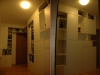 Řešení prostoru chodby, kde klient požadoval umístění knihovny a zároveň skříň na uskladnění čistících prostředků, sezónních bot, nářadí atd. Hlavní skříň na oblečení a kabáty je v jiné místnosti.