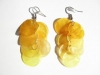 Veselé a lehoučké náušnice z perleťových plátků ve žlutooranžové barvě. Rozměry cca 2 x 7 cm. Průměr placiček 2 cm. Každá náušnice obsahuje celkem 7 perleťových plátků. Uvedená cena je za 1 pár (2 kusy).