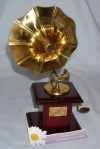 Velikost 26 cm. Nefunkční jen jako dekorace. Materiál: dřevo-kov.