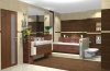 Koupelna je místo se zvýšenou vlhkostí vzduchu a je proto třeba kombinovat vhodné materiály, aby nábytek nepodléhal deformacím. Kvalitní laminované dřevotřískové desky a kvalitní laky v případě MDF a masivu zajistí odolnost a trvanlivost.