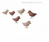 Ptáčci jsou dostupni ve 2 sadách. První sada obsahuje 3 pruhované ptáčky v červeno-krémové kombinaci o velikosti 8, 10 a 13 cm. Druhá sada obsahuje 3 červené ptáčky s krémovými tečkami o velikosti 8, 10 a 13 cm.