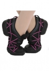 Lehká dětská prodyšná taneční obuv s použitím umělé kůže. Svršek vyroben z lehké prodyšné síťoviny. Zajimavý vzhled díky růžovým páskům.