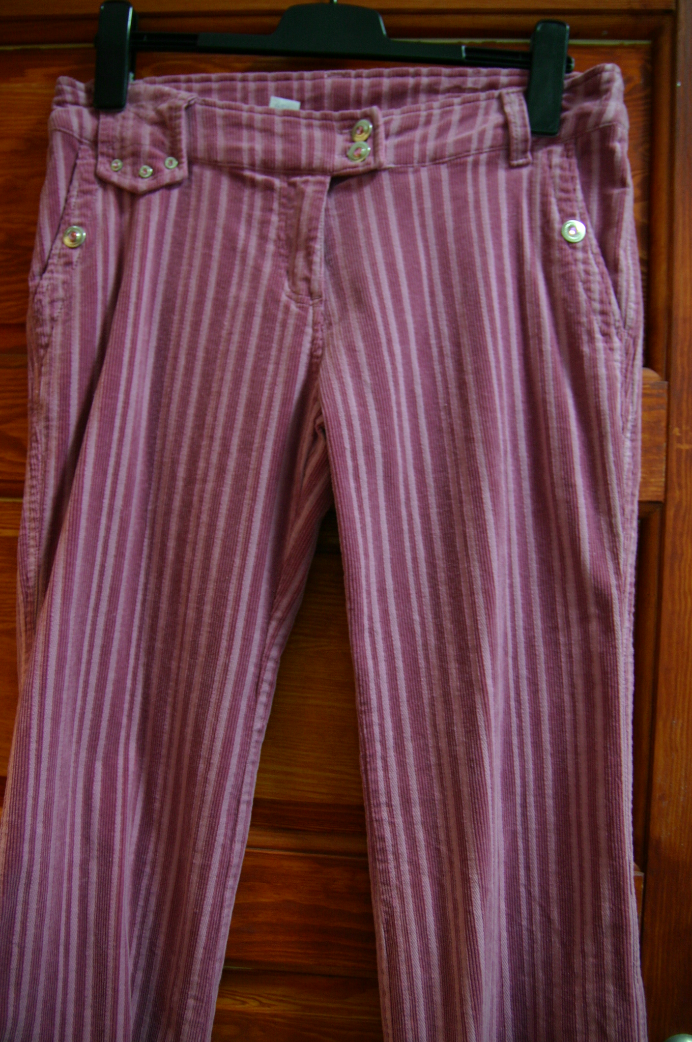 Růžové manžestrové kalhoty aj.