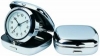 Elegantní hodiny v krabičce, vyskakovací. Analogový ciferník, alarm, pěkné hliníkové provedení. V sametovém pouzdře, obsahují baterie. Rozměry: 6,7x6,7x2 cm.