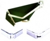 Navíjecí markýza s kloubovými rameny. Pružina v kloubu ramene je opatřena dvěma ocelovými lanky krytými plastem. Matice a šrouby jsou kryty plastovými krytkami.