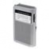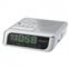 Radiobudík s jedním časem buzení, zelený LED displej, analogový tuner VKV/SV, buzení rádiem či tónem, timery Sleep a Snooze, stříbrná barva.
