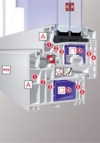 Elegantní a přitom klasický design profilu, středové těsnění a v neposlední řadě výborné tepelně-izolační vlastnosti (koeficient prostupu tepla rámu až Uf = 0,9 W/m2K.