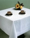 Bílý damaškový ubrus s oblíbeným vetkaným motivem a bordurou po všech čtyřech stranách.