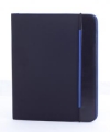 Složka na dokumenty z polyesteru, zavírání na gumičku, součástí poznámkový blok. Sítotisk. O rozměrech 253 x 315 x 13 mm.
