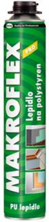 Jednosložkové nízkoexpanzní polyuretanové lepidlo, ve formě pěny v tlakové nádobě, pro lepení polystyrénových desek a jiných plošných a izolačních materiálů.