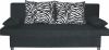 Rozkládací pohovka s úložným prostorem. Provedení: mikrofáze červená + polštář vzor žluté květy, modrá + polštář vzor žluté květy, Triton černobílá pruh + Gudson černý.