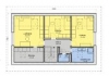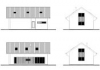 Střecha – typ valba, střešní krytina – kanadský šindel, okapy a svody Lindab v zinkově šedé barvě, minerální fasáda bílé barvy, bílá plastová okna s izolačním dvojsklem, 2x francouzské okno v obývacím pokoji a ložnici